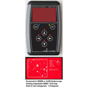 In addition you will need usually a laptop or PC to run the autoguider software. The term "stand-alone" means that for this autoguider no additional computer power is required. The software is concealed in the hand control box and the red-light display shows you the camera image, as well as configuration options. There is no more practical solution for autoguiding a SLR camera in mobile use!