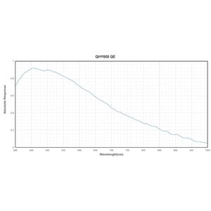 The QHY600 Pro features a back-illuminated sensor with a quantum efficiency of up to 90%. Readout noise is very low, reaching approximately 1.1 e⁻ at maximum gain. The camera offers a typical full-well capacity of 51 ke⁻ in high-gain mode and approximately 80 ke⁻ in extended full-well mode. A 2-CMS readout mode (double signal sampling with averaging directly in the sensor) further reduces readout noise to approximately 1.3 times less than in normal mode.