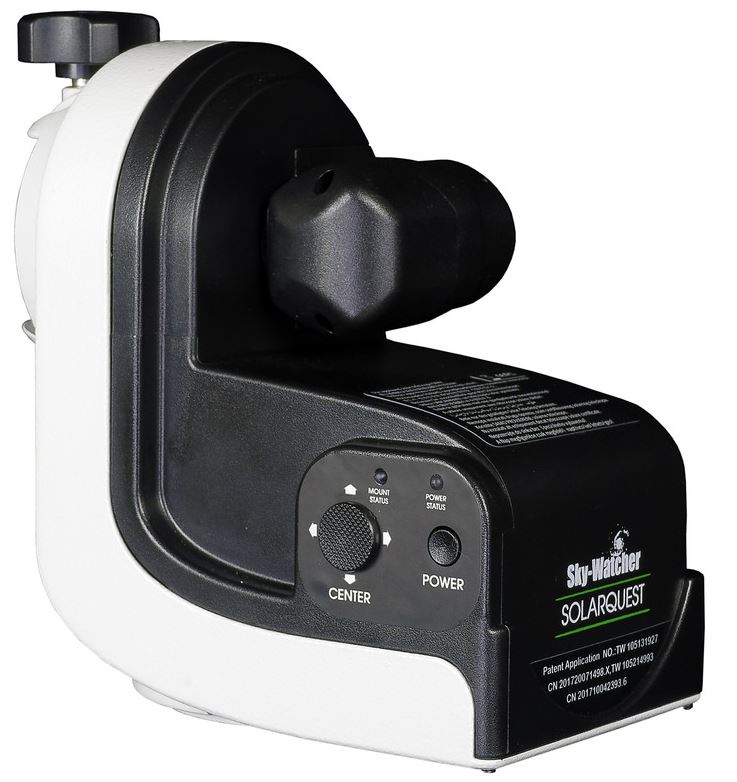 The azimuthal single arm mount, Solarquest, can hold small optics weighing up to four kilos, making it especially light and quiet. The Solarquest, in combination with a small sun telescope, forms an easy-to-transport system that is quick to set up – that is both particularly comfortable on your balcony at home and ideal for travel or for training purposes.