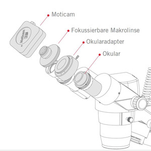 Simply attach the camera to the focusable macro lens and select the correct eyepiece coupler for your microscope. Once this has been done put the complete combination onto the eyepiece, and you have turned your conventional microscope into a digital microscope. This solution is also applicable for non-Motic microscopes.