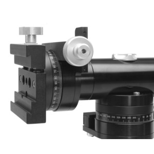 Ajuste de forma rápida e intuitiva el objeto deseado mediante el acoplamiento deslizante variable. El ajuste fino y el seguimiento en ambos ejes se pueden realizar mediante un mecanismo de precisión de calidad Losmandy: cojinete de agujas y rueda helicoidal con 7 cm de diámetro y 180 dientes, eje helicoidal de latón con cojinete de bolas en ambos extremos.