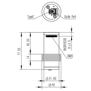 La cámara se puede conectar fácilmente al enfocador de 1,25 pulgadas, pero también se suministra con un adaptador de c-mount.