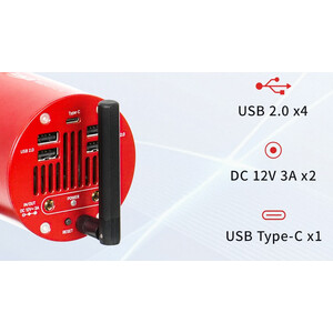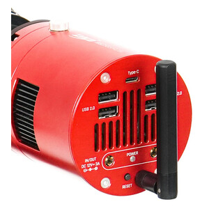 WLAN de doble banda: la antena externa de doble banda, compatible con frecuencias de 2,4 GHz y 5 GHz, permite un uso estable y fluido de la cámara en un radio de 20 metros. Con la aplicación ASIAir de ZWO, puede controlar la cámara y ver las imágenes fácilmente a través de su Smartphone.