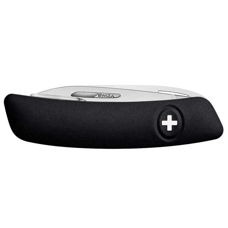 La navaja suiza SWIZA D06, con su revolucionario diseño de 360° y su robusta superficie antideslizante, se adapta perfectamente a la mano. La forma ligeramente curvada de la navaja permite acceder fácilmente a las herramientas y, gracias a los recortes continuos para diestros y zurdos, es fácil de abrir: Hoja de 75 mm con bloqueo de seguridad, sierra, punzón y taladro con ojo de aguja, abrebotellas con destornillador n.º 3 y doblador de alambre, abrelatas con destornillador n.º 1, destornillador de estrella n.º 1-3 y pinzas.