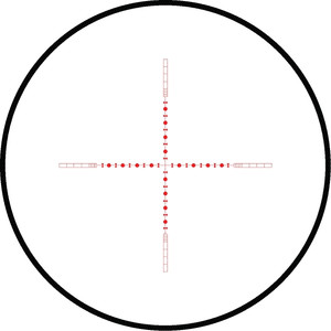 Escala Mil-Dot con aumento de 10x. Marcas intermedias a intervalos de 1⁄2 Mil para puntos de referencia más precisos. Grabado en cristal, flotante.
