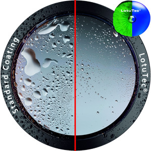 Como sobre las hojas de loto o las plumas de pato, las gotas de agua ruedan por el objetivo. El revestimiento LotuTec® de las lentes del objetivo y el ocular garantiza que el agua o la nieve se desprendan de la superficie. Como ni el agua ni la suciedad pueden adherirse a la superficie del objetivo de los VICTORY HT, tendrá que limpiar menos y aprovechará más el tiempo para sus observaciones de la naturaleza.