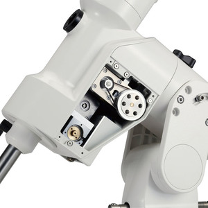 - Capacidad de carga de hasta 22 kg: se utilizan dos juegos de rodamientos para el eje de ascensión recta. Con el nuevo diseño EQ, la montura AXJ ha aumentado su capacidad hasta alcanzar una carga útil de 22 kg. Dado que los motores, el eje sin fin y la rueda helicoidal están situados en la parte inferior de la montura, se necesitan menos contrapesos que con otros modelos.
