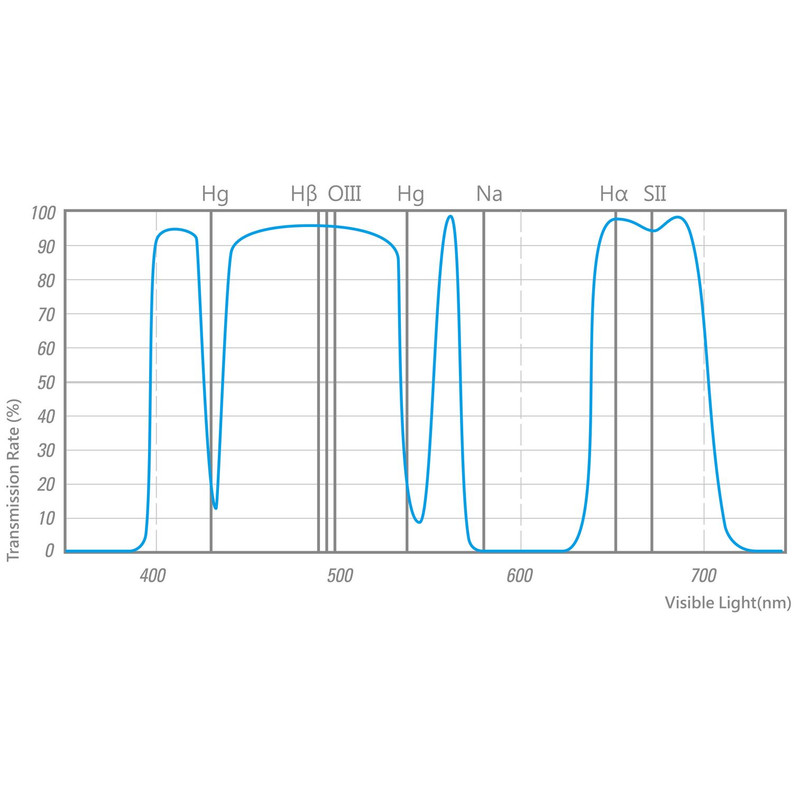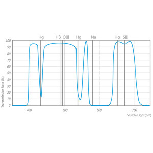 - El filtro Astro Multispectra de STC puede reducir la interferencia de la iluminación artificial de la ciudad y aumentar la longitud de onda de Hα, Hβ, OIII y SII.