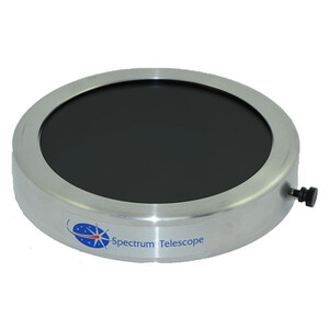 Fabricada en poliplástico negro de 0,002 pulgadas de grosor, la película óptica es duradera y puede durar muchos años con los cuidados adecuados y un uso normal. Al igual que los filtros solares de cristal, dispone de una célula de aluminio que se fija firmemente al parasol contra rocío del telescopio con un tornillo de mariposa de nailon. La lámina transparente está fabricada con material de alta calidad y ha sido sometida previamente a pruebas ópticas.