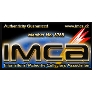 La autenticidad de la piedra está garantizada por la pertenencia del proveedor a la I.M.C.A. (International Meteorite Collectors Association): números de miembro 3850 y 8785.