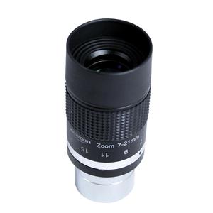 - Un ocular con muchos aumentos: distancias focales de ajuste continuo, desde 7 hasta 21 mm
