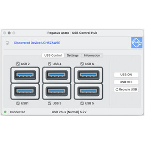 El dispositivo es totalmente compatible con el conmutador ASCOM. Esto significa que puede activar/desactivar cualquier puerto USB con un software compatible con ASCOM.
