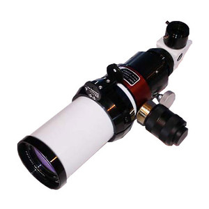 Este completo telescopio solar es un acromático de gran calidad. Su lente frontal reduce la cantidad de luz residual a la mitad (en comparación con acromáticos normales). También elimina el posible coma, astigmatismo, distorsiones en el centrado para crear, junto con las lentes colimadoras necesarias, un telescopio solar flat-field esféricamente corregido. La imagen se aprecia con una resolución extremadamente alta en la zona roja del espectro. El sistema óptico está libre de sombreado (libre de sombreado central) y es ideal para observar la superficie solar y sus protuberancias. El tubo es metalizado y de color blanco.