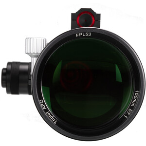 Observación del cielo nocturno: gracias a su diseño Modular, el filtro solares puede retirarse del telescopio en unos sencillos pasos. Con un kit de conversión opcional (consulte "Accesorios recomendados"), el refractor apocromático de 3 lentes puede utilizarse entonces como telescopio para la observación y fotografía del cielo nocturno. El objetivo triple con cristal especial FPL-53 proporciona una imagen con colores puros. Pueden utilizarse espejos zenitales estándar de 2 pulgadas en el enfocador R&P de alta calidad del kit de conversión. Este kit de conversión opcional es esencial para utilizar el telescopio por la noche.