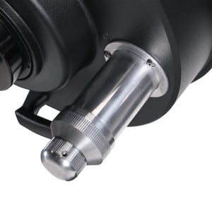 Microfoco de desplazamiento de imagen cero: la imagen se enfoca con el espejo principal. Esto está diseñado de tal manera que el espejo no puede quedar inclinado. El enfoque es preciso, con una reducción de 1:7, a través de una palanca muy práctica. Los modelos con una apertura de 355 mm y 406 mm (14" y 16") están equipados con una fijación especial adicional, con la que se mantiene el enfoque incluso con estos espejos.