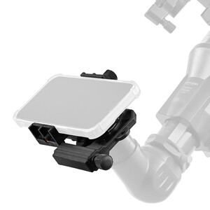 Quizás la parte más emocionante del juego de accesorios sea el adaptador de smartphone. Con él, puede fijar su propio teléfono móvil directamente al ocular y tomar fotos de lo que está observando. Capture los paisajes craterizados de la Luna o fotografíe Júpiter con sus lunas. El control obturador Bluetooth incluido garantiza imágenes sin vibraciones. Comparta su fascinación por el cielo estrellado con su familia y amigos. Más fácil, imposible.