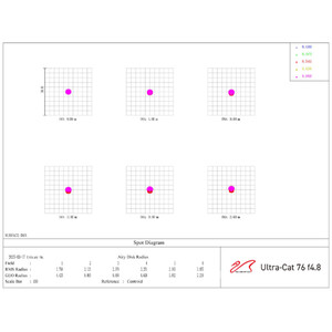 Con un diseño óptico Petzval de 5 elementos, que incluye vidrio Super ED y lantano, y una rápida relación de apertura de f/4,8, este telescopio ofrece imágenes impresionantemente nítidas con un campo plano en su círculo de imagen de 50 mm. El diseño óptico corrige la curvatura del campo de imagen, por lo que no es necesario un aplanador de campo externo. Este diseño óptico es intrínsecamente cromáticamente puro y plano.