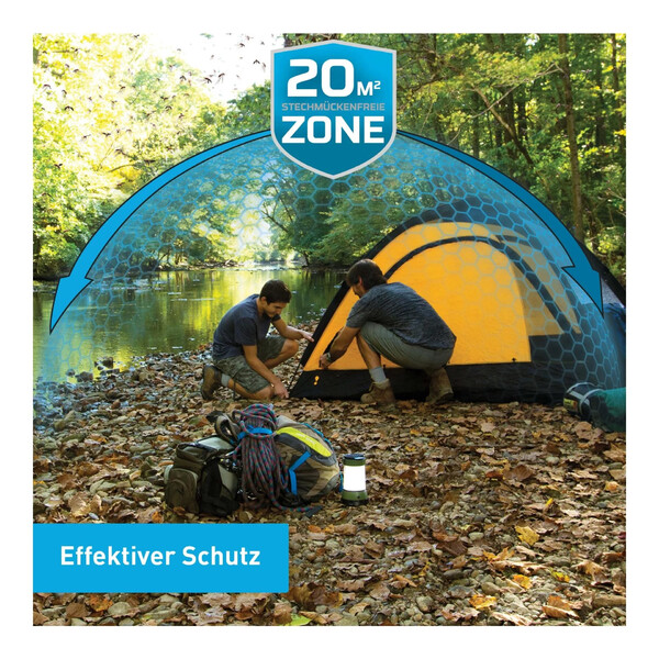 With the Thermacell MR-CLE lantern, Thermacell offers an instrument that provides effective mosquito control and LED lighting at the same time, but can also be used separately. Thermacell technology provides an effective protection area of approximately 20 square metres, keeping away up to 98% of mosquitoes and similar blood-sucking insects.