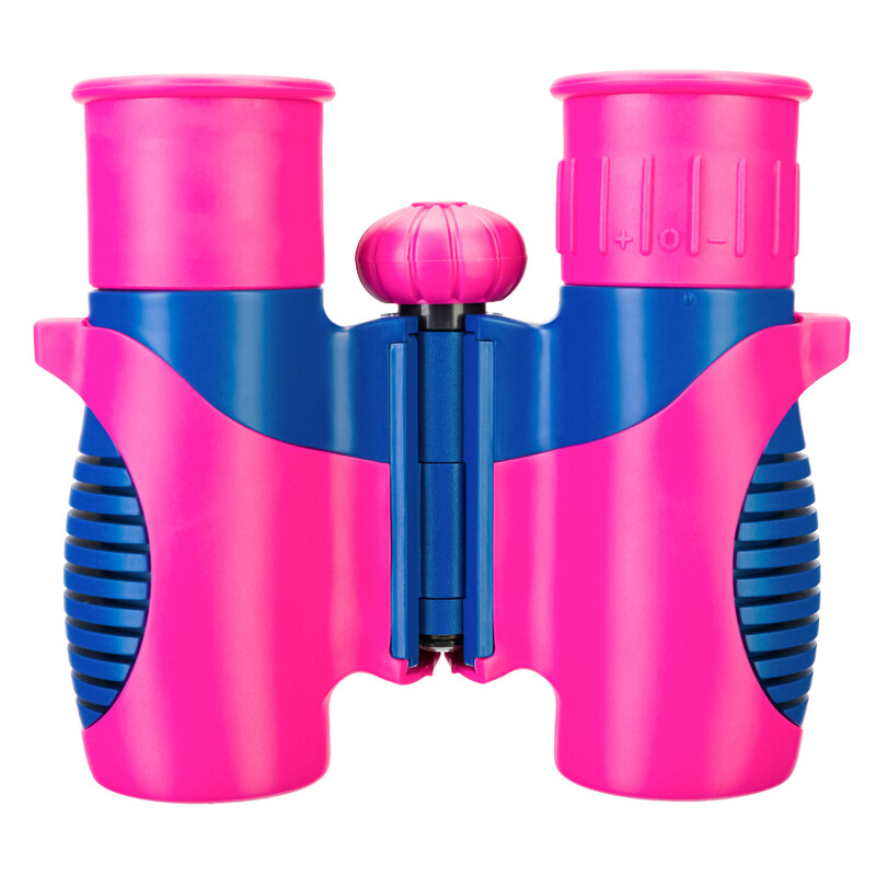 The focusing wheel is located in the center, so it’s easy to adjust the focus with either the right or left hand. The body is made of plastic with a rubber coating, so it is lightweight but quite durable. These binoculars are recommended for children over four years of age.