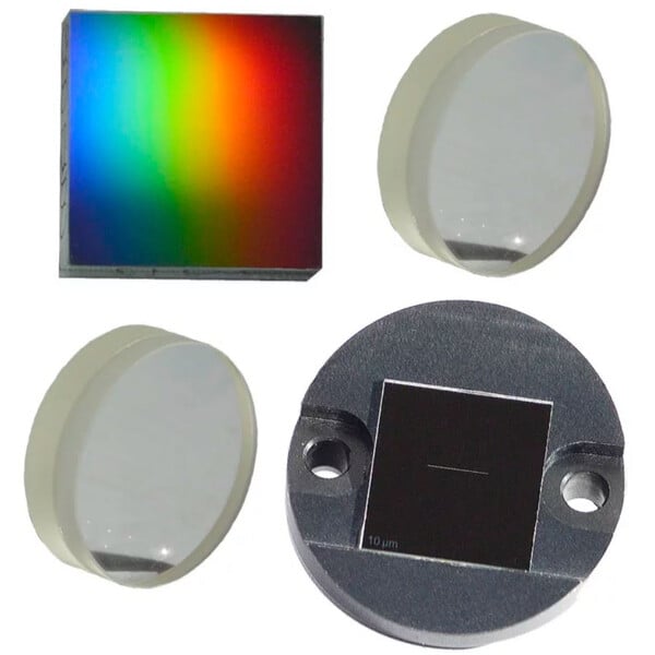 Nota bene: questo kit contiene solo gli elementi ottici. Dovrà quindi acquistare anche le parti stampate in 3D e altri componenti (fotocamere, accessori, ecc.). Con Sol'Ex (Solar Explorer), può scattare incredibili immagini del sole come se avesse un filtro a banda particolarmente stretta (tipicamente 0,3 Angstrom) - molto più stretta di qualsiasi filtro disponibile in commercio, che offre viste ad alto contrasto della cromosfera. Può anche scegliere la lunghezza d'onda della sua immagine (H-alfa, H-beta, sodio, elio, calcio... l'intera gamma visibile è accessibile).
