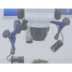 Due luci LED con supporto articolato per il fissaggio su un foro M8, ad esempio un supporto Stem con motore. Il rilascio dell'otturatore avviene tramite il controller in dotazione. Il posizionamento avviene tramite supporti articolati con una portata di circa 20 cm. Quando la manopola è serrata, i supporti e i faretti non si muovono più, impedendo così l'oscillazione e il ritorno elastico dell'illuminazione. All'estremità anteriore dei faretti LED è presente una filettatura fine M27 per il fissaggio dei filtri. La luminosità di un faretto LED è superiore a quella di un classico faretto alogeno SCHOTT KL1500 ed è quindi paragonabile a quella di un faretto SCHOTT KL1600LED.