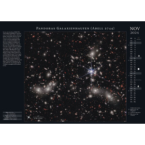 Unico nel suo genere è il testo dettagliato redatto da astronomi esperti, che spiega cosa si nasconde esattamente dietro ogni oggetto celeste. Su ogni pagina del calendario è presente anche una tabella dati che mostra, tra le altre cose, in quale costellazione si trova l'oggetto nel cielo.