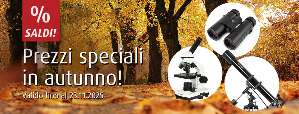 Che sia un oculare, una montatura o un telescopio: nella nostra Promozione d’Autunno ognuno troverà la sua attrezzatura preferita!