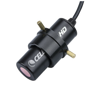 Con l'anello adattatore, la fotocamera sostituisce qualsiasi oculare standard con diametro di 23 o 30 mm e si collega facilmente al vostro Mac (max 2 MP) o PC Windows (5 MP completi) tramite un cavo USB standard.