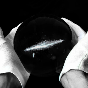 All'interno di questa massiccia sfera di vetro, 200.000 punti incisi con precisione mappano la nostra galassia, gli ammassi globulari stellari e la galassia nana del Sagittario con una precisione sorprendente.