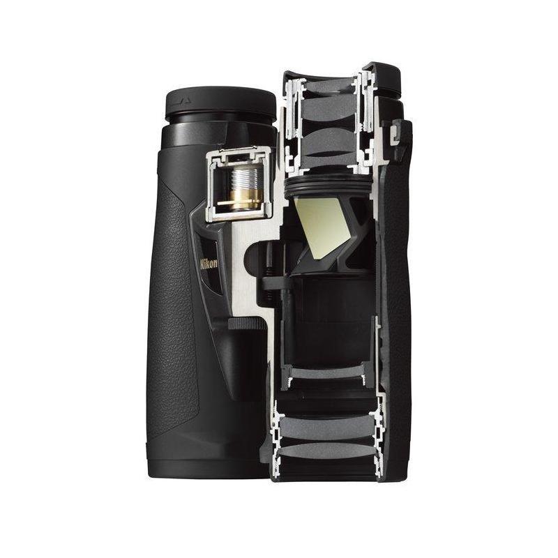 Le lenti in vetro ED (Extra-low Dispersion), il rivestimento multistrato dielettrico altamente riflettente dei prismi e l'avanzato rivestimento multistrato delle lenti Nikon garantiscono una trasmissione della luce superiore e immagini nitide e ad alta risoluzione con un contrasto eccezionale, anche in condizioni di scarsa illuminazione ambientale. La curvatura del campo visivo è ridotta al minimo grazie alla lente di livellamento del campo visivo, che garantisce una qualità dell'immagine eccezionale fino ai bordi estremi del campo visivo. La grande manopola di messa a fuoco, facile da usare, copre il regolatore di diottrie, evitando così modifiche involontarie della regolazione diottrica. Questi binocoli impermeabili e antiappannamento sono estremamente maneggevoli e robusti, quindi ideali per il trekking e l'osservazione della natura.