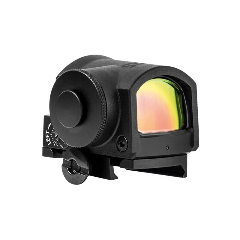 Mirare con l'ottica è incredibilmente veloce e affidabile. Indipendente da Il punto di mira illuminato in rosso mostra la distanza tra gli occhi e l'angolo di visuale sicuro sul bersaglio. Ideale per scattare con entrambi gli occhi aperti. - Design compatto