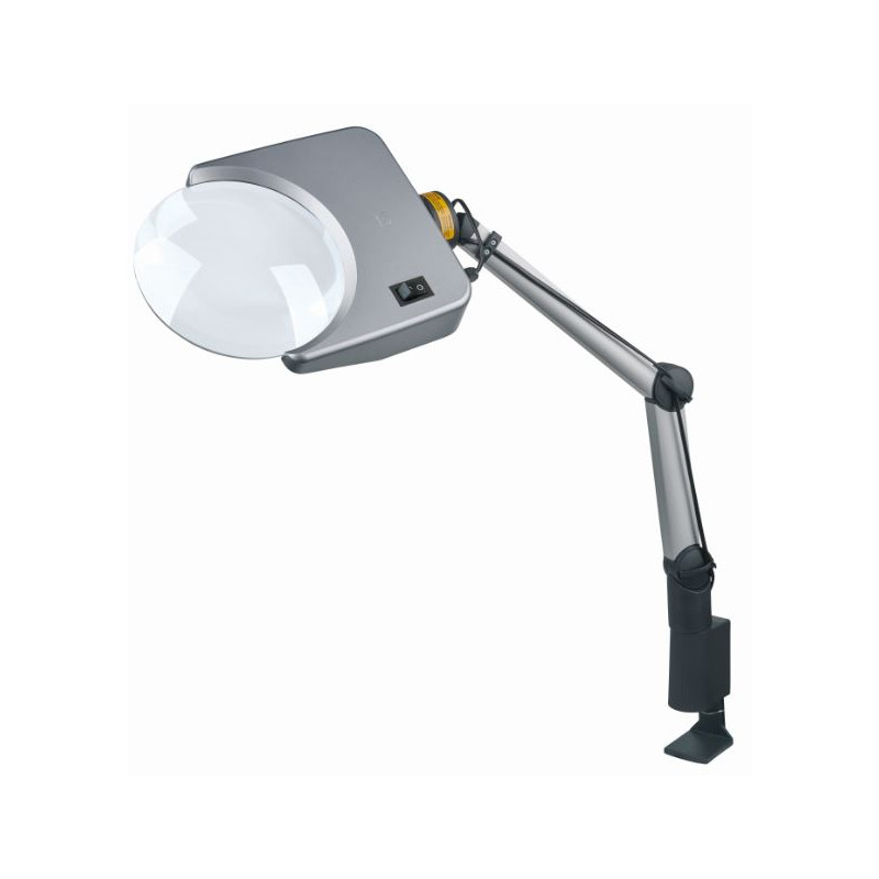 - Braccio in alluminio verniciato in 2 parti con giunti in plastica regolabili e meccanismo di compensazione a molla (raggio d'azione di circa 1 m) o braccio flessibile a collo di cigno disponibile anche con diametro della lente di 120 mm.