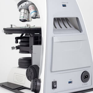 A new level of Transmitted/Incident light microscope for diverse Polarization applications: Panthera TEC POL Epi Trino is a trinocular microscope with a set of UC Plan Achromatic objectives, working with UC eyepieces of 20mm Field of View. An interchangeable 30W Halogen/3W LED light source is part of a Full-Köhler setup in Transmitted light. Incident light is provided by a compact illuminator with 3W LED light source. The Motic LightTracer system with memory function, a built-in Low-Energy mode and an LED feedback indicator helps to optimize your workflow.