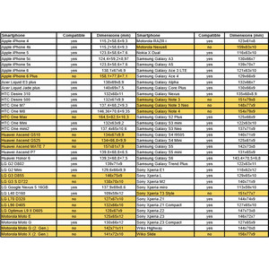 Non importa che tipo di smartphone abbiate: quasi tutti i modelli possono essere fissati e facili da adattare. Perfino i grandi smartphone, come il Samsung Galaxy S4, S5 o S6 trovano perfetta collocazione in questo adattatore.