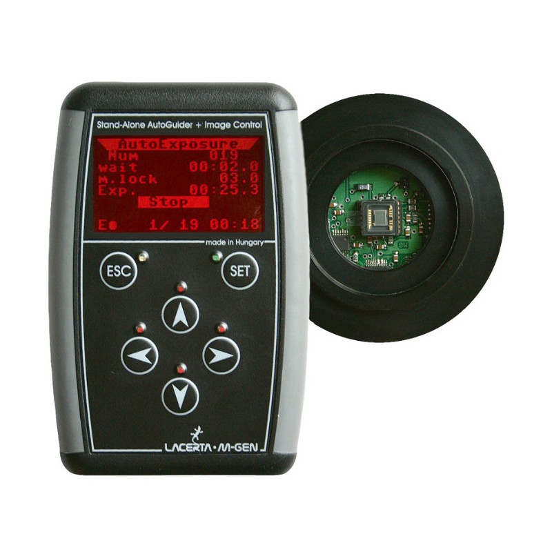Inoltre di solito l'autoguida richiede un laptop o un PC, dove installare il relativo software. Questa autoguida invece è definita “stand alone”, perchè non necessita di un PC: il software è installato nella pulsantiera e la luce rossa del display ti mostra l'immagine della camera e le opzioni di impostazione. Soprattutto con una reflex, non c'è soluzione più pratica per il guiding!