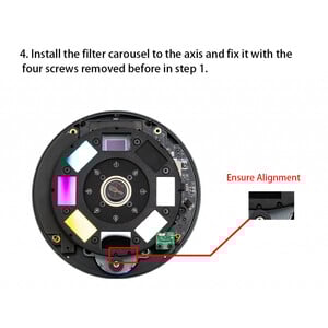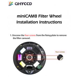 La versione con fotocamera a colori della miniCam8 include quattro filtri. Una volta montati sulla ruota portafiltri, migliorano notevolmente le prestazioni della fotocamera per la fotografia di nebulose e galassie.