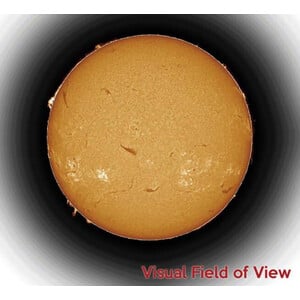 Con un'apertura di 100 mm e una lunghezza focale effettiva di 1690 mm (f/16,9), il telescopio fornisce immagini nitide e complete del Sole con una risoluzione eccellente. La lente di barlow telecentrica integrata 4,3x è ottimizzata per il passaggio della linea H-alfa e garantisce un'illuminazione uniforme dell'intero campo.