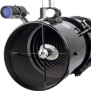 Come per ogni telescopio newtoniano rapido, un opzionale correttore di coma è raccomandato per ottenere immagini a campo piano. Gli accessori standard includono due anelli di alluminio per il tubo, un cercatore 9x50, adattatori da 2" e 1,25" e una ventola da 12c per accelerare il raffreddamento (richiede un alimentatore da 12C o 8 batterie AA, non incluse).