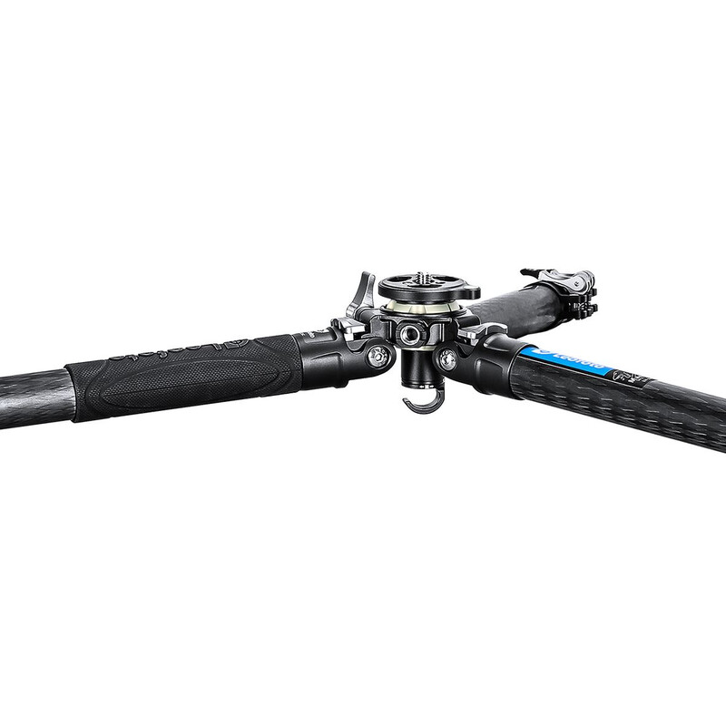 This lightweight carbon tripod comes with a centre column that is mounted in a half shell. This allows you to easily level the mounting plate on uneven ground without having to change the length of the tripod legs. You can quickly adapt to different situations in the great outdoors.