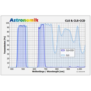 Het CLS CCD-filter verhoogt het contrast tussen astronomische objecten en de hemelachtergrond. Door het brede transmissiebereik kan een grote hoeveelheid licht door het filter passeren, waardoor sterren slechts in geringe mate worden verzwakt. Dit filter is geoptimaliseerd om zoveel mogelijk storend licht te blokkeren en zoveel mogelijk licht van de objecten door te laten. Het filter is optimaal geschikt voor gebruik op telescopen met alle openingen met een openingsverhouding van 1:2 tot 1:15.