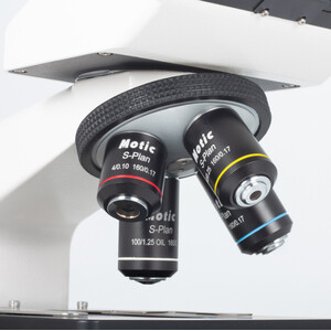 De Motic B1Elite modellen overbruggen de kloof tussen het educatieve en professionele gebruik van een microscoop. De tafel zonder uitstekende rek is ontworpen voor beginners, net als de dark field optie met aantrekkelijke beeldeigenschappen. De "koele" belichting beschermt warmtegevoelige preparaten in biologielessen. De verbeterde semi-plan objectieven bieden samen met de 3W LED verlichting en coaxiale scherpstelaandrijving professionele apparatuur voor huisartsen en kleine laboratoria. Phase contrast wordt gerealiseerd via insteekbare hulzen voor de 10X/40X objectieven en wordt gebruikt voor urinesedimenten en uitstrijkjes.