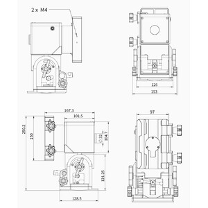- Het montagesadel maakt het gebruik van prismarails volgens de Vixen- of Losmandy-standaard mogelijk. Zo kan vrijwel elke telescoop worden gemonteerd.