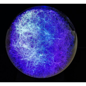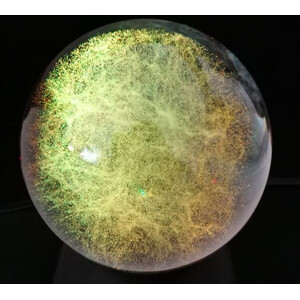 Een groot fragment uit het universum en toch slechts een klein deel van het geheel: De bol heeft een diameter van 250 megaparsec (815 miljoen lichtjaar) en toont 380.000 sterrenstelsels die deze uitgestrekte ruimte vullen. Wetenschappelijke simulaties en metingen laten zien hoe ze dit doen: in deze grote dimensies heeft ons universum een structuur zoals die van een spons. De sterrenstelsels verzamelen zich in hopen, superclusters en lange draden die enorme leegtes - "voids" genaamd - omgeven. Dompel uzelf onder in deze ongelooflijke dimensie!