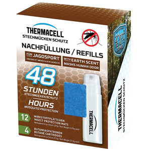 De Thermacell navulverpakking E-4 Earth Scent is een navulverpakking voor 48 uur, bestaande uit 4 butaangaspatronen en 12 actieve stofplaatjes. De variant Earth Scent is speciaal ontwikkeld voor de jacht. De extra ingrediënten maskeren op betrouwbare wijze de menselijke geur. Alle Thermacell-instrumenten gebruiken dezelfde navulproducten. Een gaspatroon gaat tot 12 uur mee, een actieve stofplaatje tot 4 uur. Gaspatronen en actieve stofplaatjes zijn houdbaar en hoeven niet onmiddellijk te worden gebruikt. Ongebruikte actieve stofplaatjes zijn luchtdicht verpakt om de houdbaarheid te maximaliseren.