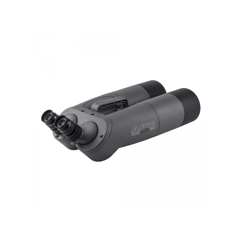 Deze grote verrekijker met verwisselbare oculairen is qua kleur en sferische correctie vergelijkbaar met een goede telescoop met 100 mm opening.