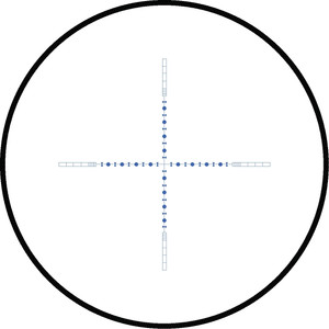 Mil-Dot-schaal bij 10x vergroting. Tussenmarkeringen op 1⁄2 Mil afstand voor nauwkeurigere richtpunten. In glas geëtst, vrij zwevend.