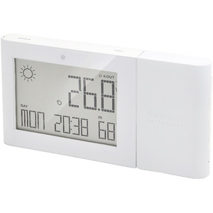 - Binnen- en buitentemperatuur en luchtvochtigheid (afhankelijk van het model) met trendweergave; ontvangst van informatie van draadloze buitensensoren (één sensor meegeleverd)
