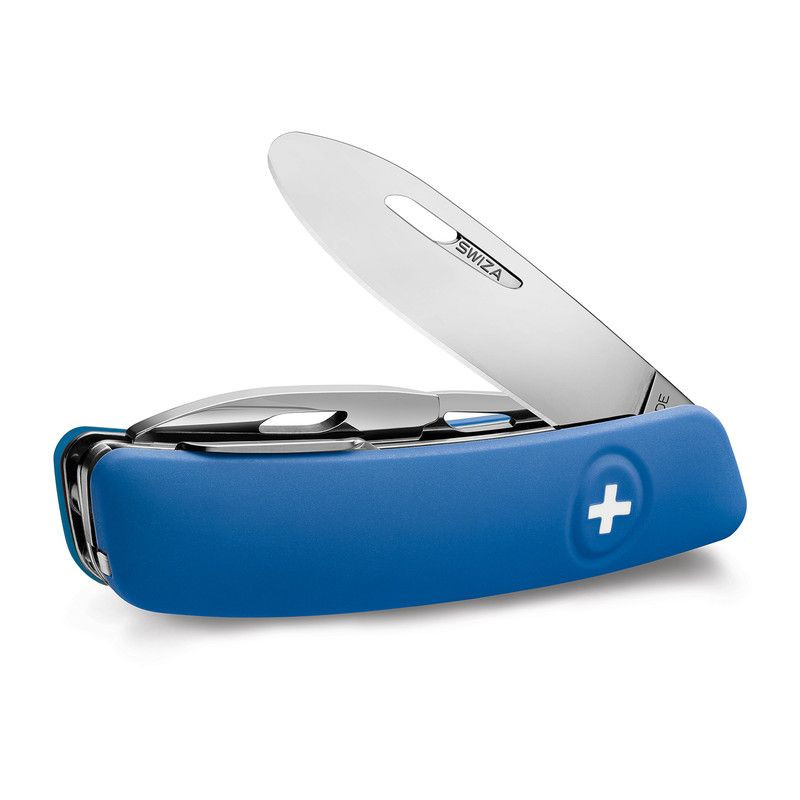 Het 72 mm lange lemmet is vervaardigd uit roestvrij staal 440 / 57 HRC en bestaat uit een chroom-molybdeenlegering. Het heeft een professionele en duurzame snijcapaciteit. Naast de robuustheid staat vooral de veiligheid voorop: om het lemmet te ontgrendelen en te sluiten, moet het SWIZA-kruis worden ingedrukt. De doorlopende uitsparing maakt het openen voor rechts- en linkshandigen mogelijk. - Steek- en boor