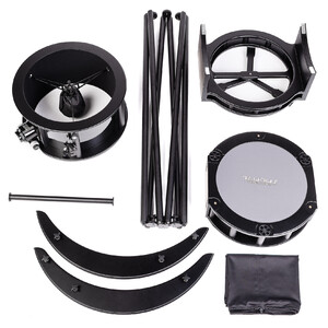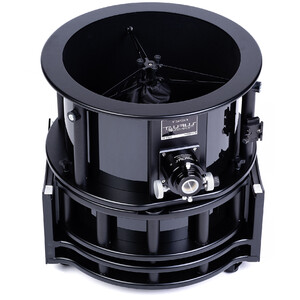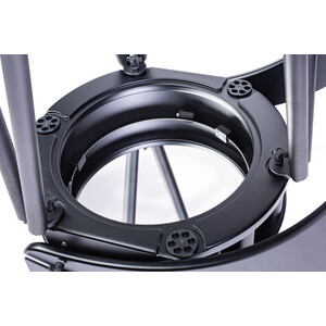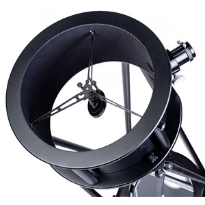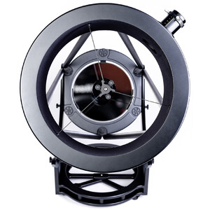 - Eenvoudig te gebruiken: Teflon-blokjes en een speciaal gelagerde basisplaat maken een vrijwel wrijvingsloze tracking mogelijk, ook bij hoge vergrotingsfactoren. De weerstand van de basis (azimut) kunt u naar uw eigen voorkeur instellen. De hoed kan in twee posities worden gemonteerd, over een optimale inkijk in de focuser bij zenit- of horizonobservaties. Omdat de hoofdspiegel zo diep mogelijk zit, kan de maximale hoogte van de focuserinkijk zo laag mogelijk worden gehouden.