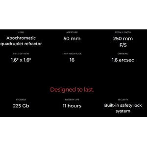 Het fotograferen van nevels en sterrenstelsels hoeft niet ingewikkeld en moeizaam te zijn: met de geïntegreerde 12,5-megapixel camera en innovatieve technologieën biedt Vespera Pro een alles-in-één oplossing waarmee u aan de slag kunt met astrofotografie. Of u nu een beginner bent of een ervaren astrofotograaf, Vespera Pro biedt u alles wat u nodig heeft. Maak vanaf het begin adembenemende foto's, boek sneller vooruitgang en laat uw resultaten zien.